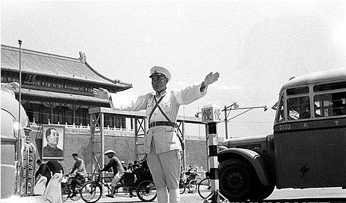 1950年6月,交通警察在北京长安街指挥交通