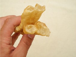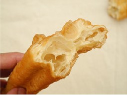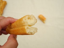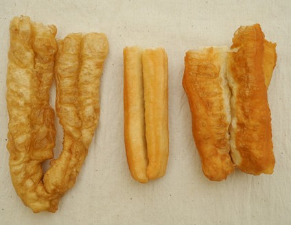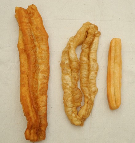 2、这种油条问题更大了,建议大家一定要注意,千万不要吃这种油条。颜色看起来就有点不正常,黄的发白,凉了以后有点发黑的感觉。这种油条不仅添加了明矾,而且用的都是问题油,如地沟油、老陈油等等炸出来的。