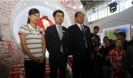 2012年5月17日,2012年伦敦奥运会前瞻,中国体育代表团领奖服亮相,郭晶晶到场。