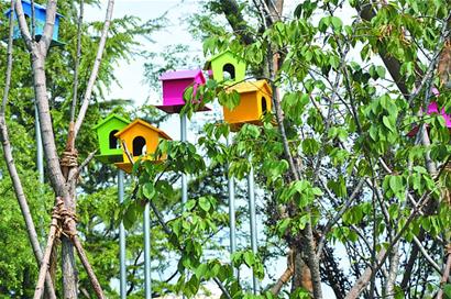 在李村河靠近金水路段整治项目施工现场可以看到,施工人员正在进行景观工程施工。清水、绿树、鸟语、红花,两旁高档住宅小区鳞次栉比……走在整治一新的河畔,记者仿佛置身江南风景胜地。尤其引人注意的是,在新栽种的树木上,镶嵌着一个个造型美观的木质小鸟巢,不时有小鸟“光顾”。据介绍,该工程引入了国外全新的生态设计理念,将着力提升河道的生态容量,构建人与自然和谐相处的生态系统。