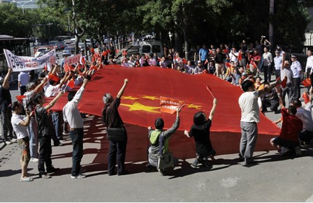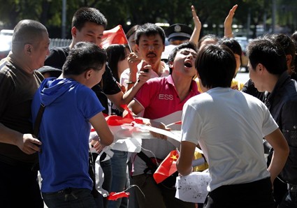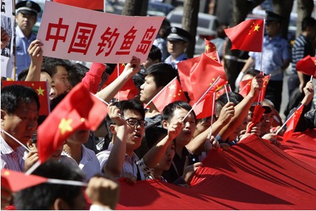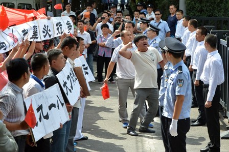 9月13日下午,北京日本驻华大使馆前,中国民众举行抗议活动,反对日本窃占中国领土钓鱼岛。