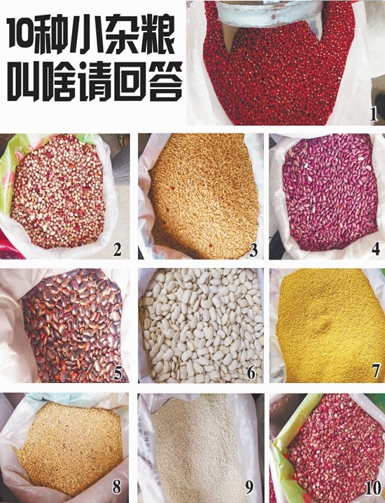 (1~10答案:红小豆、花豇豆、燕麦、花芸豆、黑雪豆、大白豆、小米、糙米、糯米、花豆。)