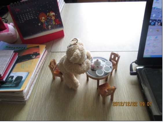 邢帅哥一番儿努力的从脏乱差的桌面,最终创意出巨萌的小熊喝茶图。可见其用心,所以得到了来自HK的土特产,保济丸,专治各种疑难杂症。呵呵