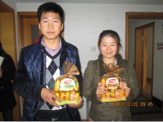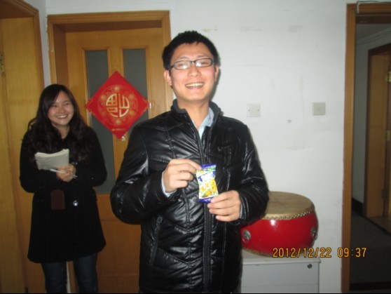 杜杜美女,鼓励奖得到了一个薯片包,哈哈,她的外号是吃货。得到这个奖品,有点名至实归啦。