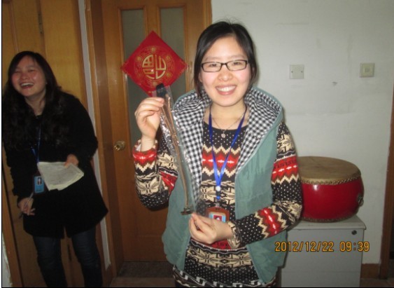 燕子美女得到,头奖。一个精美的化妆镜。但愿她的笑容和美丽的年华都在镜子里呈现,呵呵