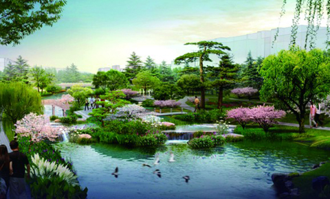 据介绍,在楼山后河改造过程中,将建设三大景观片区,其中“绿溪·溪上楼山”片区位于文昌路以东区域,为河流的源头部分。该区域的景观设计以植物造景为主,局部穿插部分园路及休闲设施。