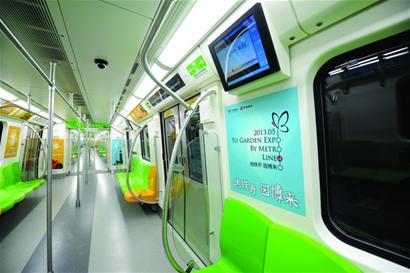 昨日,由南车青岛四方机车车辆股份有限公司研制的“园博号”地铁车辆正式在北京14号线西段投入运营,这批以“绿色园林”为主题的低碳环保A型地铁车辆将服务于即将开幕的北京园博会。