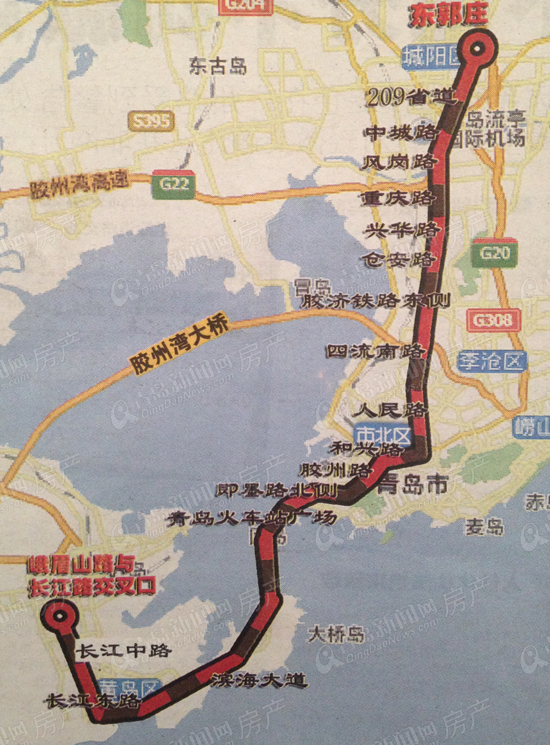 M4线:泰山路—沙子口。自泰山路起,经过海泊桥、沿辽阳路向东经汽车东站,到达沙子口。