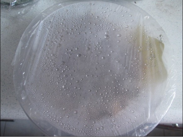 置之不理的米饭,经过两个星期,长出了绿色的毛,大部门米饭已经开始霉变,范围较大。