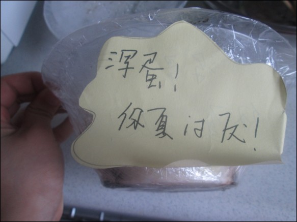 写着混蛋字样的米饭,整个表面已经全部霉变,出现的是黑色的霉菌,伴有褐色霉菌