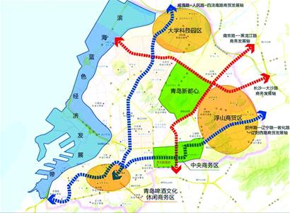 青岛中央商务区、欢乐滨海城被列入青岛“千万平米”总部商务区规划,重点打造和引进总部经济、商务办公、创意展示、会展酒店、高端金融业等产业。