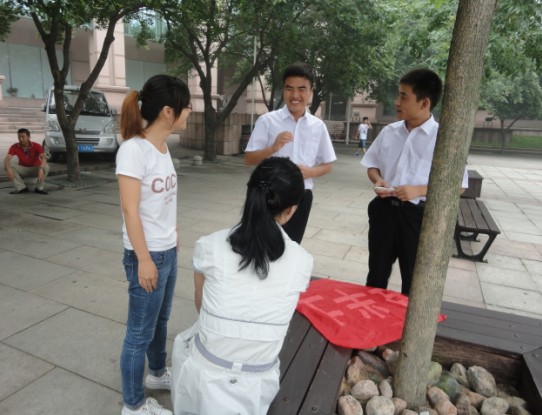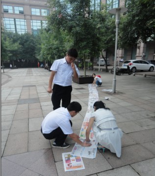 下午15:00,我们的人力资源总监带领新员工来到公司楼下的广场,将8位新员工分成两组,进行拓展训练PK。在正式PK之前,两个队伍分别为自己选择了队长,取了队名,设计了口号。在展示队名和口号的时候,两个队伍都拿出了势不可挡的气势,那么接下来的竞争会是如何呢,我们拭目以待。