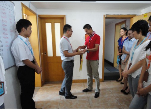 在锦旗交接仪式之后,我们又进行了新员工入职仪式,今天有两位美女通过了5天的培训观察,正式加入知道网络。她们分别成为了我们的客服部和人事部的成员,她们的加入,为这两个部门带来了新的动力,也为知道网络增添了新的风采。