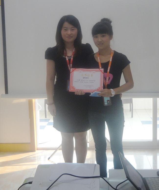 王经理为我们可爱的小雪颁发“高级商务代表”证书