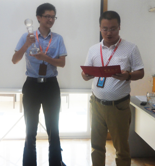 各部门经理为实现奖励目标的商务代表颁奖