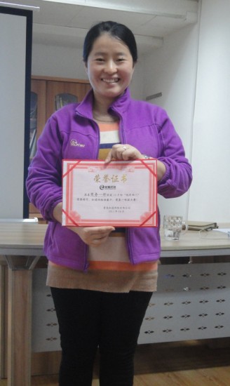 看看咱们的冠亚军笑的多开心。下面就是我们的季军喽,她就是我们知道网络的贵妃,也是刚到公司三个月的新人,最后一天,贵妃转正,成为季军,真是牛,新同事都有这样的魄力,更何况我们老同事呢,兄弟们,11月份,加油吧!!
