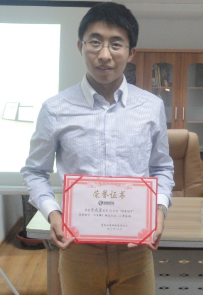 我们商务一部的同事真是好样的,冠亚军都是咱们一部的,我们细心帅气的小辛,一个是年轻如花的小雪,让我们把最热烈的掌声送给一部。他们的口号是:知道网络谁最牛,商务一部拔头筹。在10月份,一部确实做的很好。送上我们冠亚军的照片。