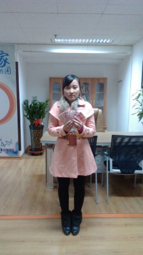 上周五,也是11月的最后一天,知道网络的全体同事们并没有休息,而是依旧为了自己最后的目标而在继续奋斗,销售就是不到最后一刻不放弃,到了最后一刻全力以赴,就是这种努力,没有理由不签单,没有理由不成功。我们刚到半月的新同事“圈圈”给我们证明了这一点,在11月的最后一天下午四点签回了她在知道网络的第一单,拿回5000元,离着自己的转正只差一点点,圈圈是个特别勤奋、特别努力的孩子,在这里,她的努力也有了相应的回报,这是我们圈圈拿着自己的第一桶金拍的照片。