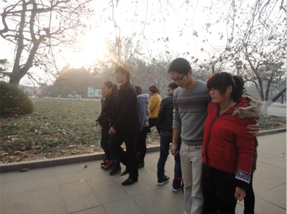这是我们在公园做的户外活动,绑腿跑,大家都在准备呢,信誓旦旦的要当冠军。