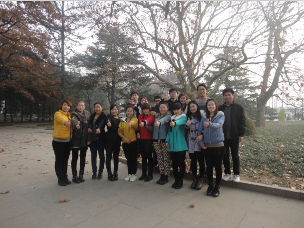 商务部跟行政人事部刚到公园,就先来了一张大合照,男的帅,女的靓。