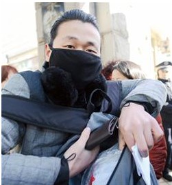 早晨8点半,第一场考试的学生进场,39中考点门外聚集了一大批送考、待考的人群。从济南来青岛考试的宋乐乐和另外8名同学包车来青岛考试。因为大家考试时间不同,所以8点的时候,车就把所有人都带到了考点。在车上挤在一起取暖,心里却惦记着考场里的状况,宋乐乐干脆顶着寒风等在考点门外。她的头上粘着水晶的水滴状头饰,眼睛化了浓浓的眼线,忽闪的假睫毛涂了许多遍睫毛膏,显得尤其浓密。