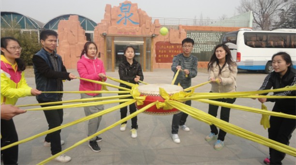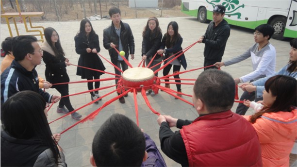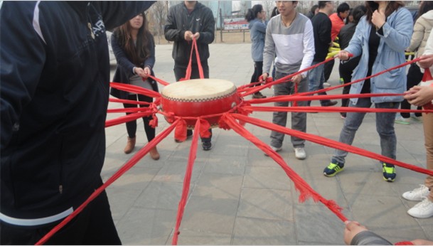下午的时间,小编继续跟大家分享我们户外拓展的第二个游戏,这个游戏其实大家也可以做的,借助的道具比较简单,只有一个鼓,然后绑上绳子,它的名字叫做-----鼓动人心。