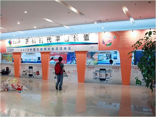 移动互联网企业今年投入力度的之大,令人吃惊。一进会场,就是3G门户先声夺人的展示体现。在今年7月宣布获得数千万美元投资的3G门户,不惜将入口签到处巨大的广告展台全部包装,任何嘉宾只要进入大会现场或者签到,必须从大广告牌旁边走过。