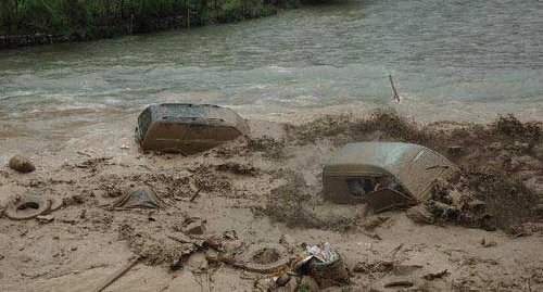 甘肃舟曲县今晨突发特大泥石流灾害,车辆冲入水中
