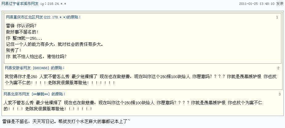 我感觉最后一楼的兄弟最有才,“雷锋是不留名,天天写日记,帮战友打个水芝麻大的事都记本上了”,哈哈哈,真给力!