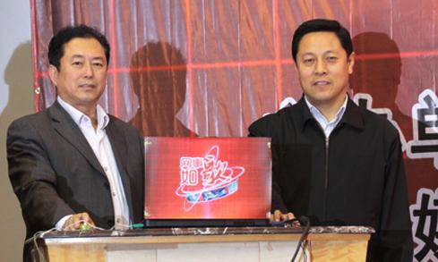市委宣传部常务副部长吕振宇(右),市委宣传部副部长、青岛日报报业集团党委书记、社长徐建宏(左)启动2011年“网事如歌”征集活动