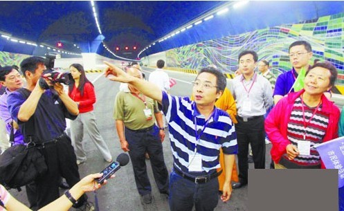 青岛胶州湾隧道工程项目负责人、胶州湾隧道工程总设计师周书明正在"解读"隧道。