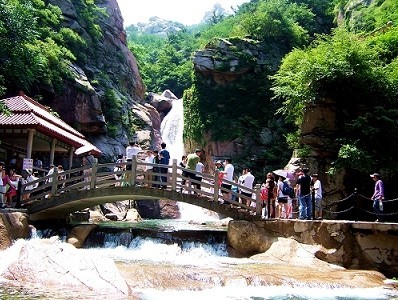 北九水游览区位于崂山主峰的北部,以优美的自然景观为主。景区内空气湿润,气候清凉,适于生长辽东半岛的植物,素有“小关东”之称,是全国著名的疗养、避暑之地。 北九水是由来自千米山峰的崂山山泉汇流而成,人称“九水画廊”。在古朴自然的内九水,依景就水构建了十八个寓意深邃的水潭,即“九水十八潭”。
