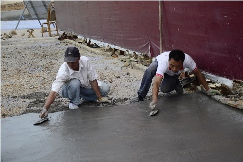 啤酒城内,工人们正在加紧硬化路面,即日起将进入美化阶段