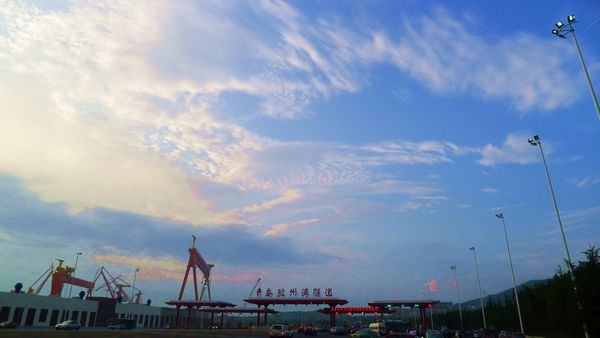 胶州湾隧道口壮美的天空
