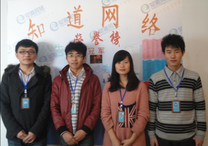 2012年1月12日,这个日子对于四个人来说应该是非常难忘的,在今天,知道网络又新添了力量,四个优秀的人才,在今天,有四个人经历了重重考验,从初试、到复试、到培训、到考核,直到今天,终于成功地成为知道网络真正的一员。真正的,从校园到职场,做了一个完美的转变,希望我们的眼光没有错,也相信在知道网络,四位新人能够健康,快乐,迅速地成长!